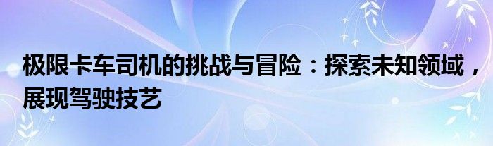 极限卡车司机的挑战与冒险:探索未知领域,展现驾驶技艺