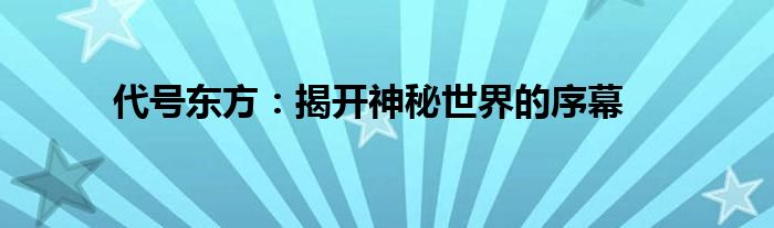 《代号东方》的冒险之旅即将开启,让我们一起踏上这段神秘的征程,探索这个充满奇幻的世界吧!