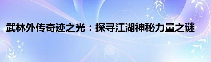 武林外传奇迹之光:探寻江湖神秘力量之谜