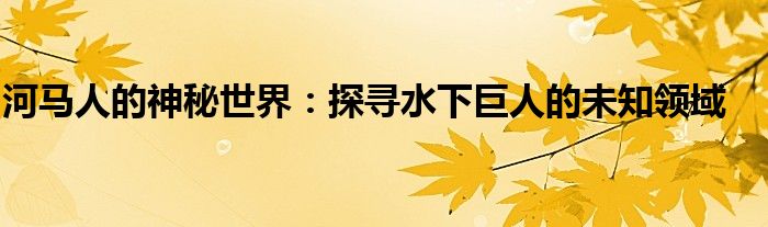 本文将带您深入了解神秘的“河马人”,探索这个水下巨人生活的未知领域。作为陆地和水中生物的奇妙结合体,河马人拥有与众不同的生活习性和令人着迷的生态环境。我们将从多个角度揭示河马人的神秘面纱,带您领略这个物种的独特魅力。