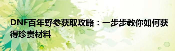 DNF百年野参获取攻略:一步步教你如何获得珍贵材料
