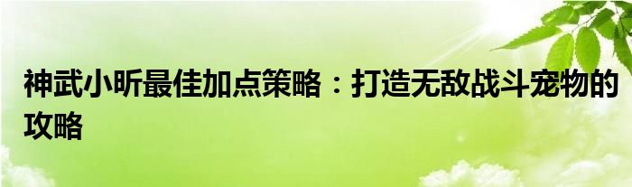 神武小昕最佳加点策略:打造无敌战斗宠物的攻略