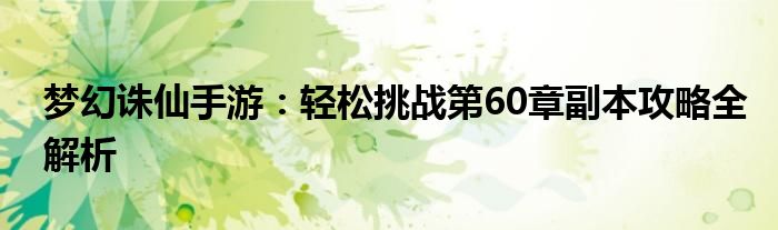 梦幻诛仙手游:轻松挑战第60章副本攻略全解析