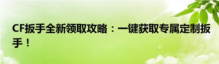 CF扳手全新领取攻略:一键获取专属定制扳手!