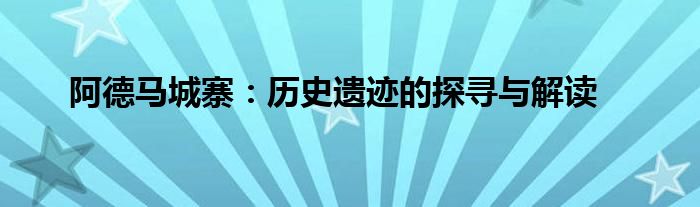 本文将聚焦于阿德马城寨,一座充满历史沧桑的城寨。文章将围绕其历史背景、建筑特色、文化内涵和现代价值展开,深入探讨这一历史遗迹的重要性与独特之处。