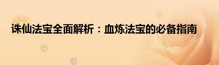 本篇指南将为你全面解析诛仙法宝如何血炼,从基础知识到进阶技巧,让你轻松掌握血炼法宝的秘诀。