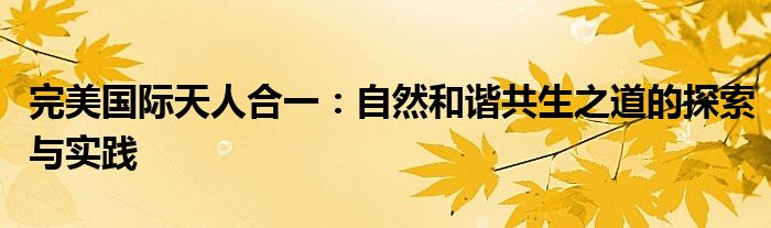 完美国际天人合一:自然和谐共生之道的探索与实践