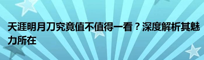 天涯明月刀究竟值不值得一看?深度解析其魅力所在