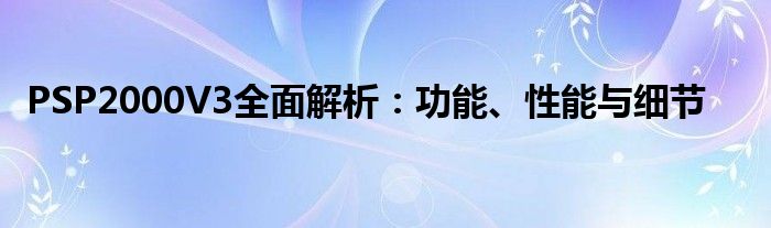 本文将全面解析PSP2000V3这一关键词所代表的产品,从功能、性能到细节一一呈现,帮助读者更好地了解这一产品。