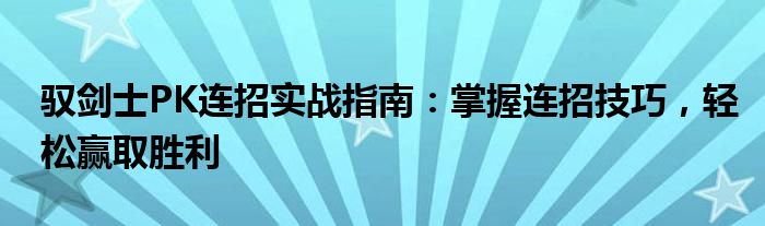 驭剑士PK连招实战指南:掌握连招技巧,轻松赢取胜利