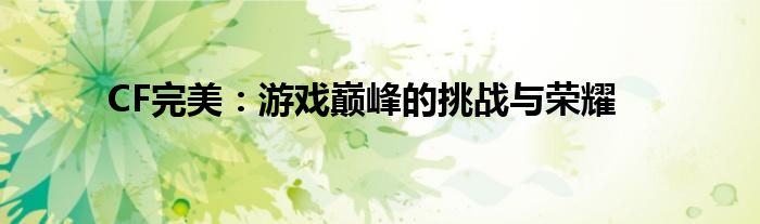 本文将探讨关于《CF完美》这款游戏的各种挑战与荣耀。我们将深入探讨这款游戏的特色玩法、玩家群体、竞技环境以及它如何成为一个受到众多玩家喜爱的游戏大作。我们将带您领略《CF完美》的游戏世界,一同感受这款游戏的魅力所在。