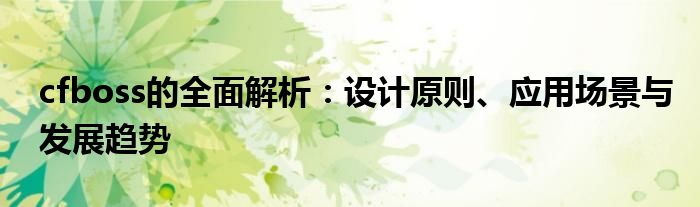 cfboss的全面解析:设计原则、应用场景与发展趋势
