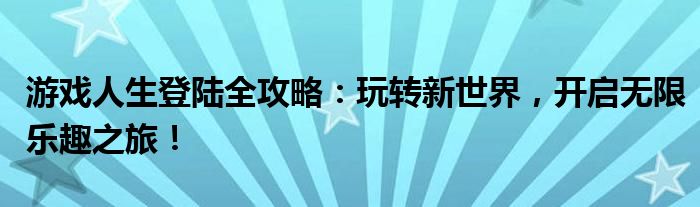 本文将为大家带来“游戏人生登陆”的全面攻略,介绍如何轻松玩转新世界,开启无限乐趣之旅。本文旨在帮助新手玩家快速了解游戏登陆后的基本操作和注意事项,同时分享一些游戏策略和心得,让玩家在游戏中取得更好的成绩和体验。
