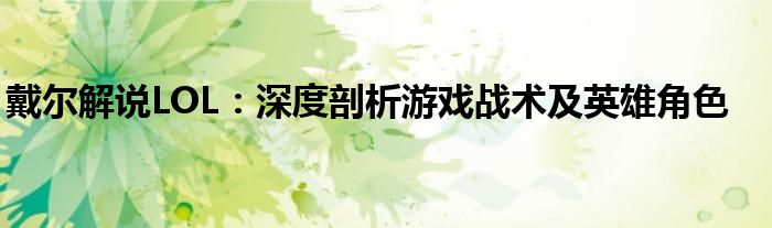 戴尔解说LOL:深度剖析游戏战术及英雄角色