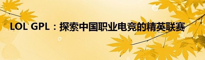 LOL GPL:探索中国职业电竞的精英联赛