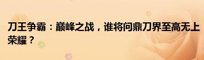 刀王争霸:巅峰之战,谁将问鼎刀界至高无上荣耀?