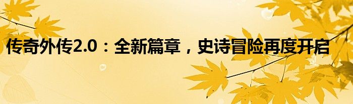 传奇外传2.0:全新篇章,史诗冒险再度开启
