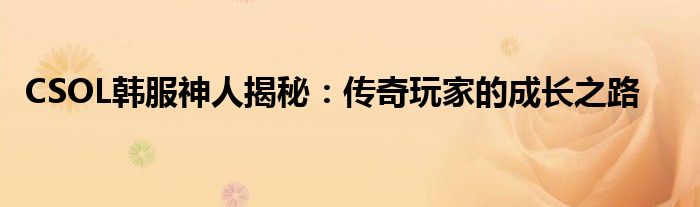 CSOL韩服神人揭秘:传奇玩家的成长之路
