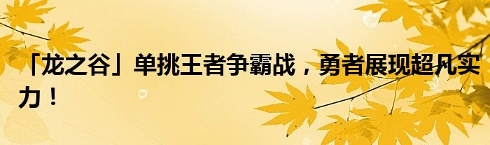 「龙之谷」单挑王者争霸战,勇者展现超凡实力!