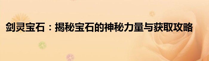 本文将深入探讨“剑灵宝石”这一关键词背后的神秘力量与获取攻略。我们将介绍宝石的种类、属性以及在游戏中的重要作用,帮助玩家更好地理解并运用到游戏中,提升角色的战斗能力。同时,我们还将分享一些实用的获取宝石的方法和技巧,助力玩家轻松获取心仪的宝石。
