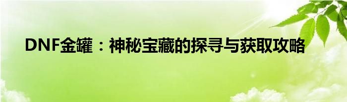 DNF金罐:神秘宝藏的探寻与获取攻略