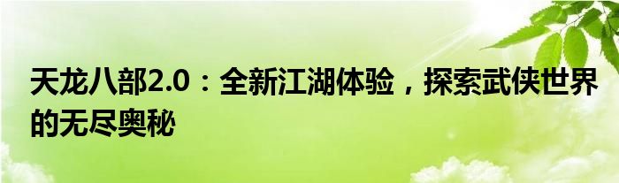 随着科技的不断发展,游戏制作技术也日益精进。作为经典武侠IP的延续,"天龙八部2.0"以全新的面貌呈现在广大玩家面前。在这个游戏中,你将进入一个充满江湖气息,富有传奇色彩的武侠世界。