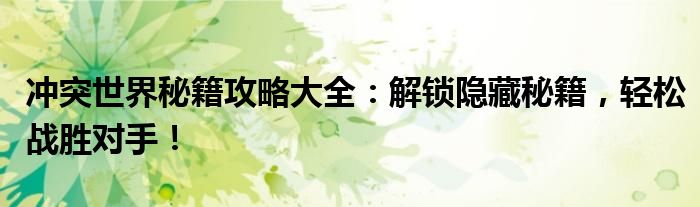 冲突世界秘籍攻略大全:解锁隐藏秘籍,轻松战胜对手!