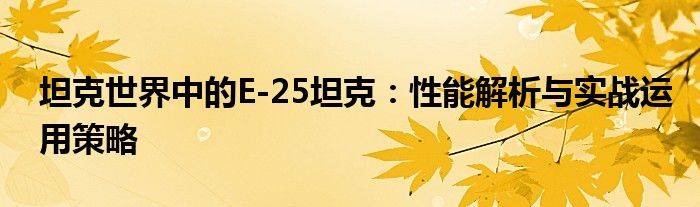 坦克世界中的E-25坦克:性能解析与实战运用策略