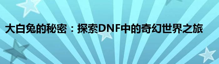 大白兔的秘密:探索DNF中的奇幻世界之旅