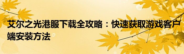 本文将为您详细介绍艾尔之光港服的下载方法与安装流程。我们将从准备工作开始,为您解析如何快速下载并成功安装艾尔之光港服游戏客户端,助您轻松开启游戏之旅。