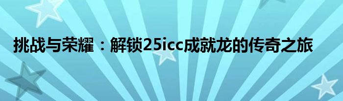 挑战与荣耀:解锁25icc成就龙的传奇之旅