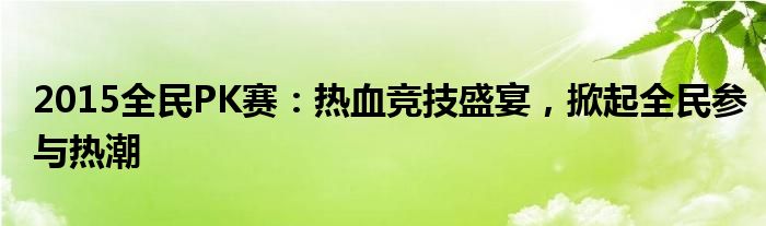 2015全民PK赛:热血竞技盛宴,掀起全民参与热潮
