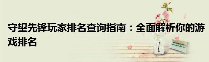 本文旨在帮助《守望先锋》玩家查询自己的排名信息,并提供提高排名的建议。希望每位玩家都能在游戏中取得更好的成绩,同时享受游戏带来的乐趣。