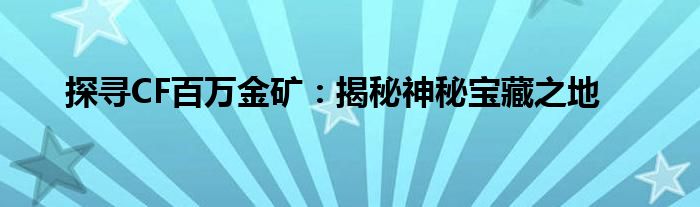 本文将带领读者一起探寻那个被称为“CF百万金矿”的神秘之地。我们将深入了解这个金矿的背景、特点以及它如何成为众人瞩目的焦点。让我们一起揭开这处宝藏之地的神秘面纱。