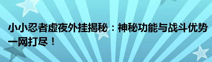 小小忍者虚夜外挂揭秘:神秘功能与战斗优势一网打尽!
