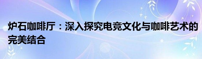 炉石咖啡厅:深入探究电竞文化与咖啡艺术的完美结合