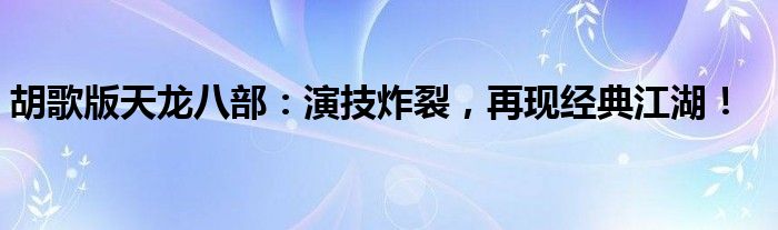 胡歌版天龙八部:演技炸裂,再现经典江湖!