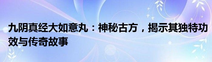九阴真经大如意丸:神秘古方,揭示其独特功效与传奇故事