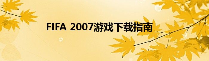 本文将为您介绍FIFA 2007游戏的下载指南,帮助您顺利获取并安装这款游戏。FIFA 2007是一款经典的足球模拟游戏,让玩家可以在游戏中体验足球比赛的乐趣。下面将详细介绍如何下载FIFA 2007游戏。