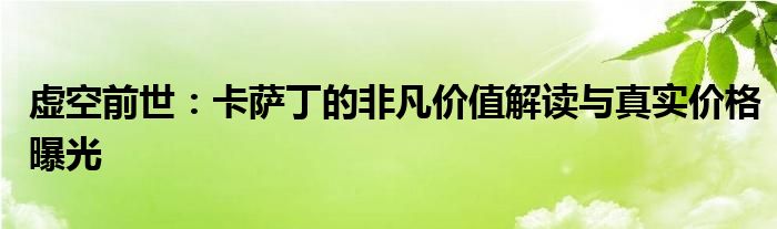 虚空前世:卡萨丁的非凡价值解读与真实价格曝光