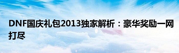 DNF国庆礼包2013为玩家们带来了丰富的豪华奖励,无论是新手还是老玩家,都能从中获得满满的收获。赶快行动起来,一起畅游DNF的国庆盛宴吧!