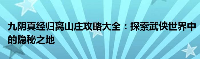 九阴真经归离山庄攻略大全:探索武侠世界中的隐秘之地