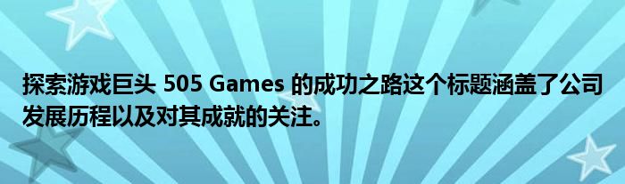 探索游戏巨头 505 Games 的成功之路这个标题涵盖了公司发展历程以及对其成就的关注。