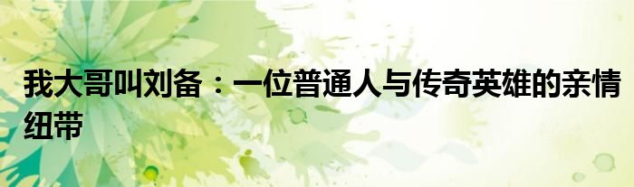 我大哥叫刘备:一位普通人与传奇英雄的亲情纽带