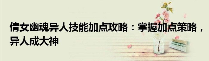 倩女幽魂异人技能加点攻略:掌握加点策略,异人成大神