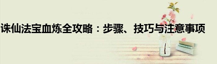 诛仙法宝血炼全攻略:步骤、技巧与注意事项