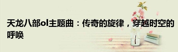 天龙八部ol主题曲:传奇的旋律,穿越时空的呼唤