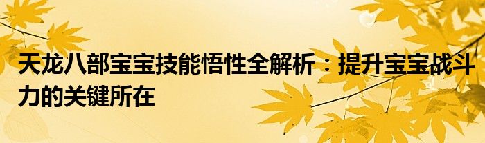 在天龙八部游戏中,宝宝作为玩家的重要伙伴,其战斗力直接影响到玩家的实力。而宝宝技能悟性,则是决定宝宝技能强弱的关键所在。提高宝宝技能悟性,不仅可以使宝宝学会更强大的技能,还能提高技能的触发几率和效果,从而显著增强宝宝的战斗力。