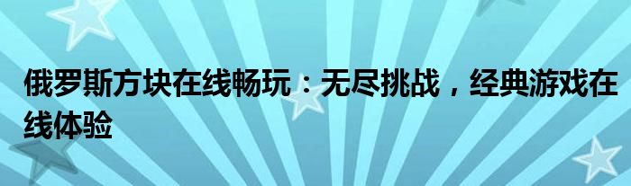 俄罗斯方块在线畅玩:无尽挑战,经典游戏在线体验