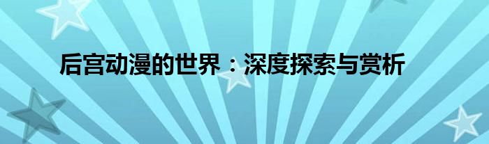 后宫动漫的世界:深度探索与赏析